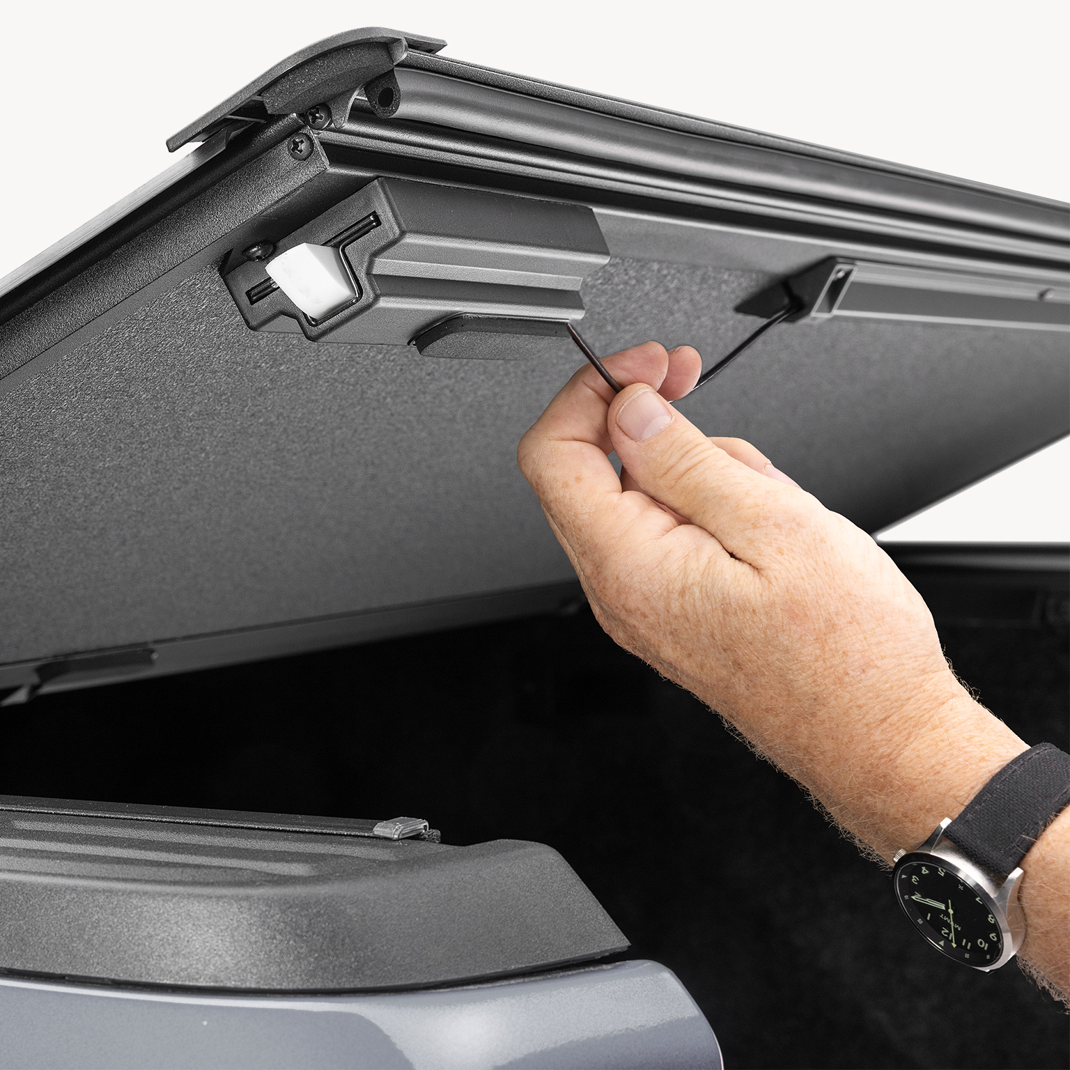 Installation is streamlined thanks to an improved click-in mounting system. Operating the cover is just as simple, drop the tailgate, release the rear latch mechanism, and fold the cover toward the bulkhead. If full bed access is required, fold the cover flush against the rear window, third brake light visibility remains unobstructed in any position.