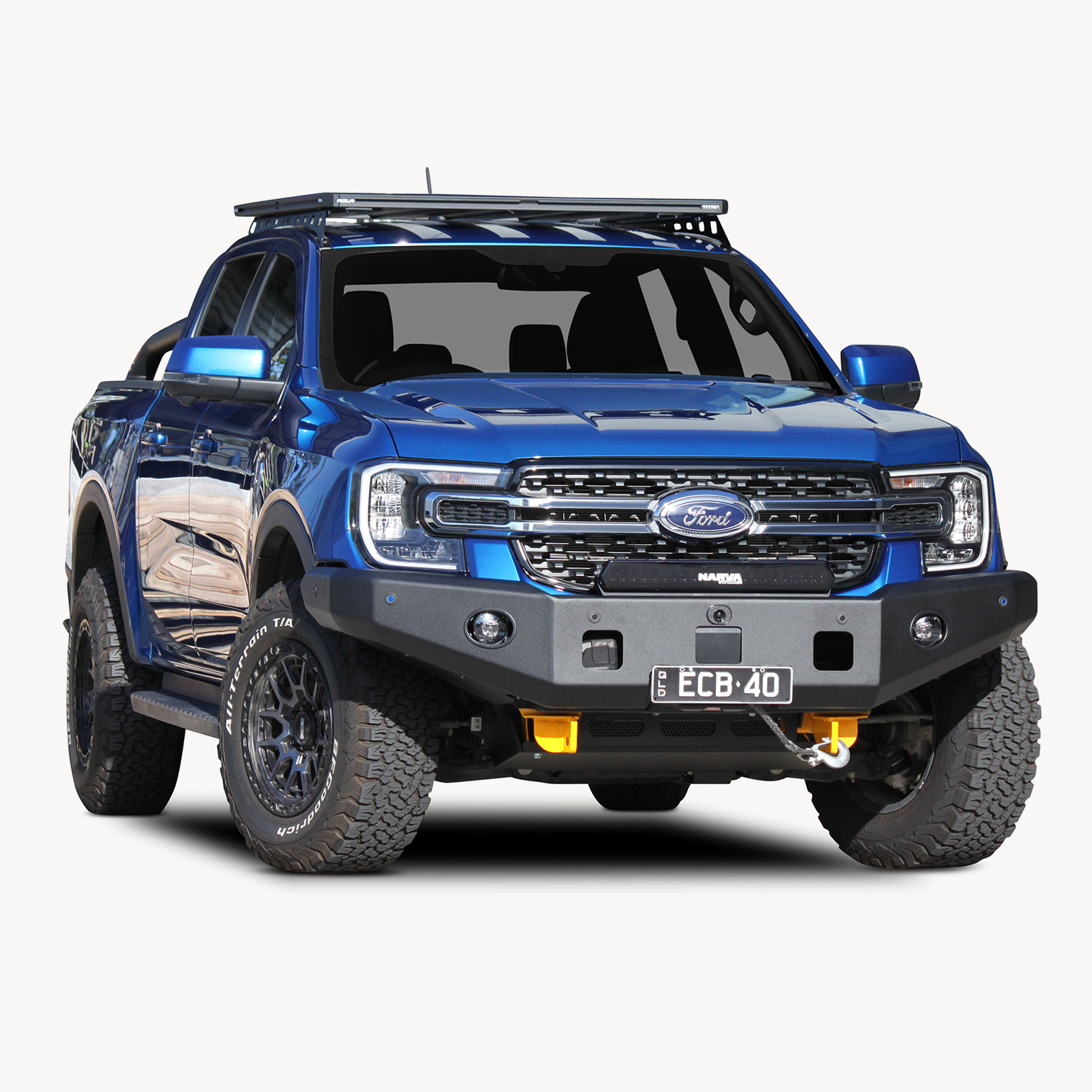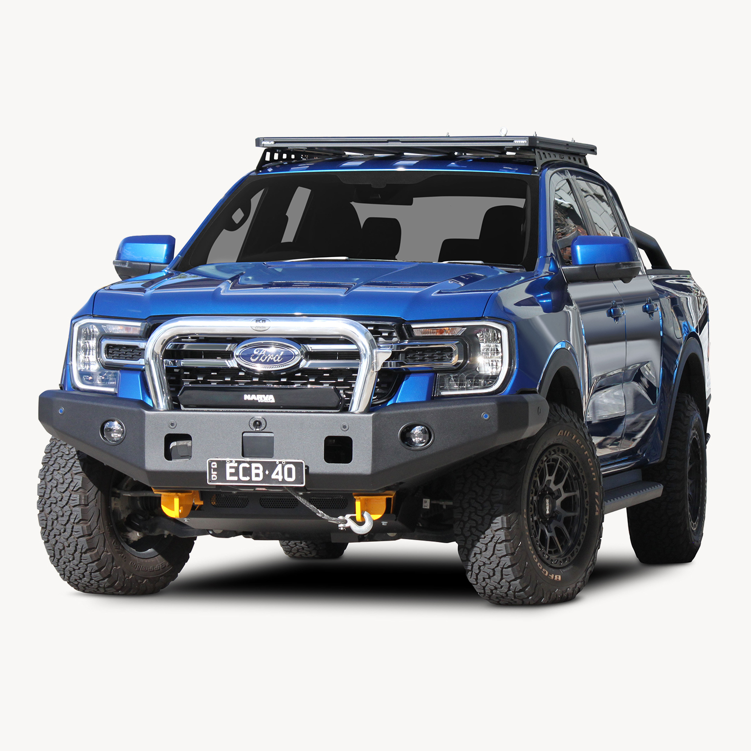 ECB’s Bullbar are made from a hi-tensile alloy that weighs half the weight of a steel Bullbar, yet offers the same level of protection. Designed to wrap around the front of the vehicle and mounted to the frame with a specific engineered 8mm thick plate steel mount to form an incredibly secure and strong fit.