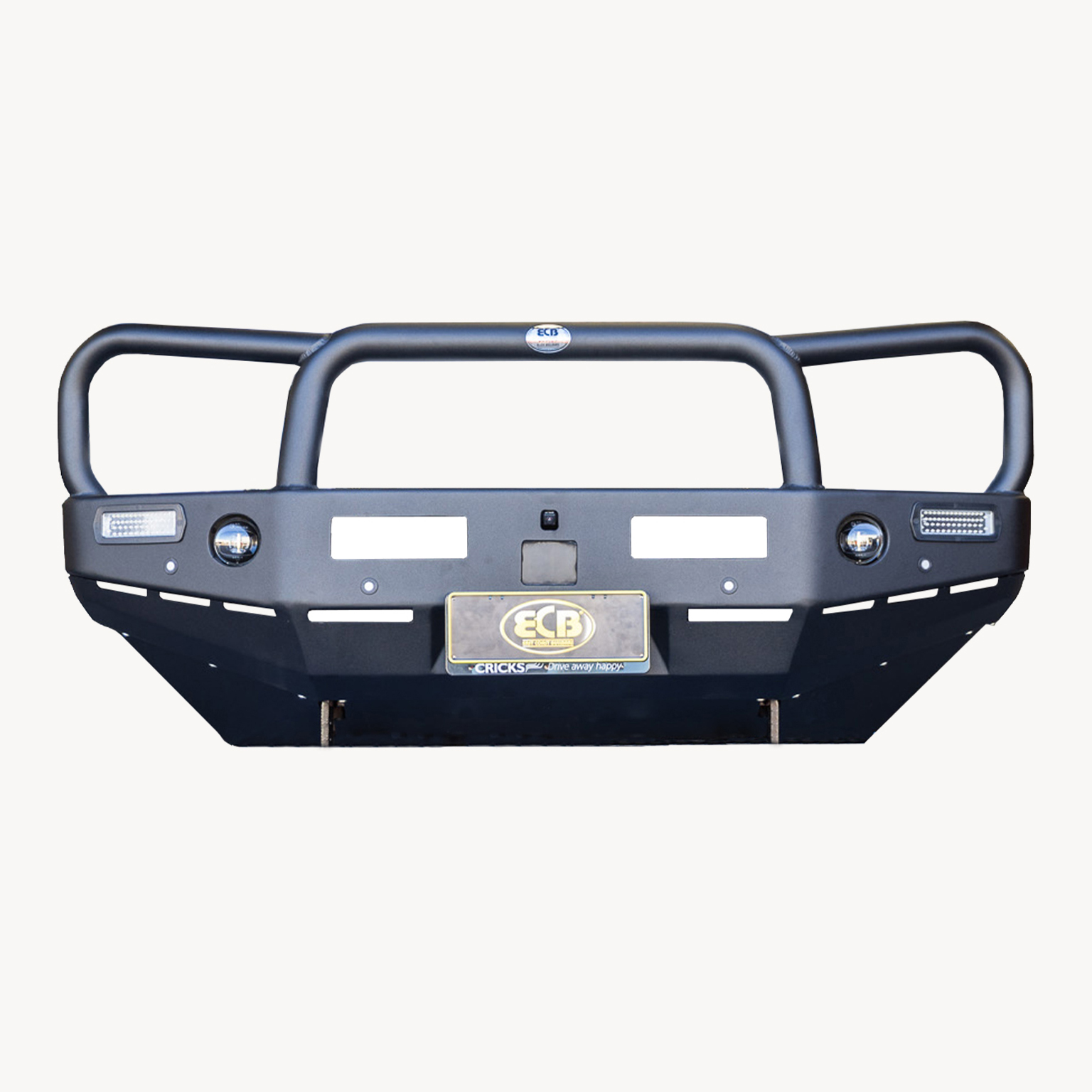 The Bullbar is further reinforced with a full width and braced lower protection skirt. Every Bullbar is secured to the vehicle with a specific engineered 8mm thick plate plasma cut steel mount and allows expansion of the crumple zones in the event of a crash. Everything ECB makes is Air Bag Compatible and ADR Compliant.