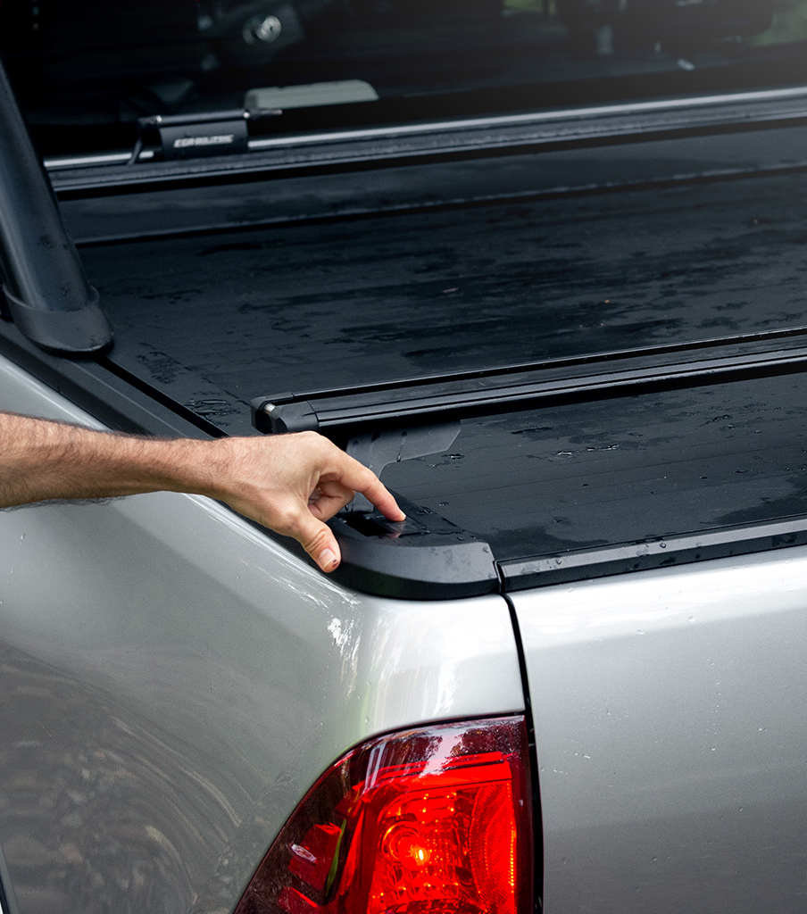 Opening, closing, or pausing your RollTrac is effortless with on-board side rail controls, while the remote central locking ECU ensures your cover locks automatically. This allows you to lock and unlock your cover using your vehicle key fob, and in-cabin control through your door-lock buttons.