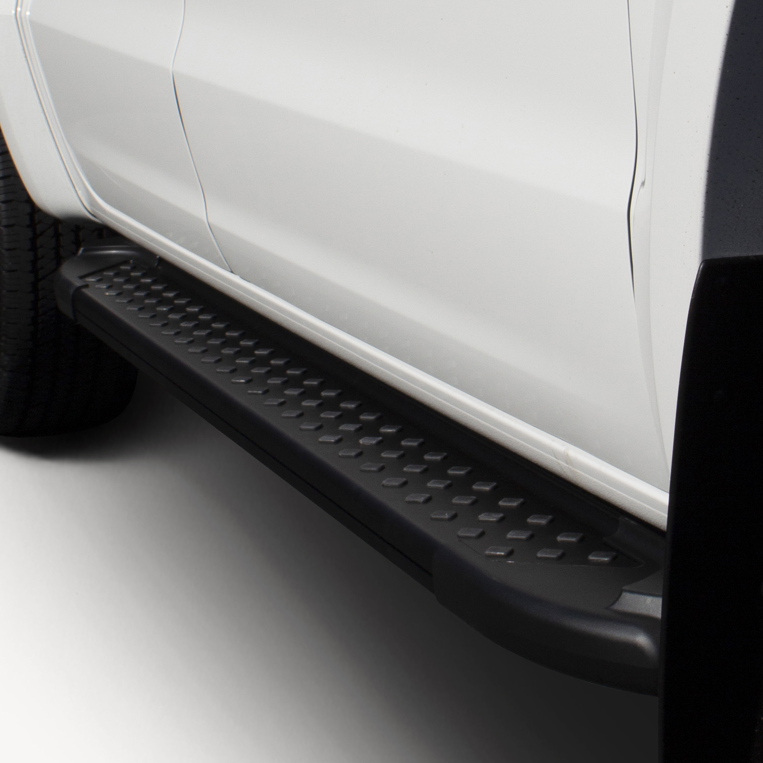 Built from aluminium, with black anodised step treads and custom end caps for protection. Toyota Hilux Quantum Running Boards provide convenient entry to your vehicle and essential access to your roof to comfortably secure your gear. With full length lower body protection, your vehicle will be protected from mud and stones and will look great with a stylish checker step tread.