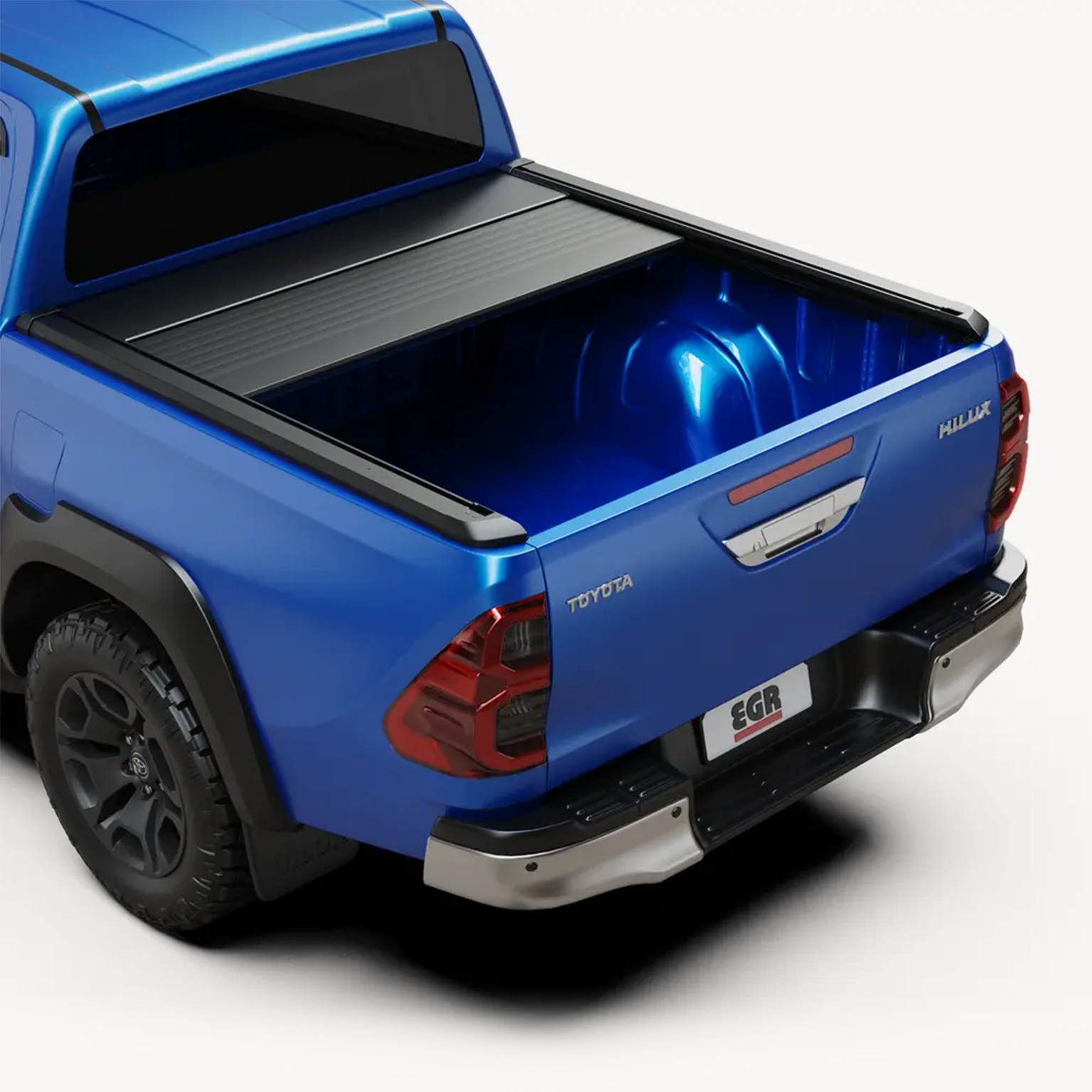 Upgrade your ute with the Toyota Hilux EGR RollTrac Electric. Opening, closing, or pausing your RollTrac is effortless with on-board side rail controls, while the remote central locking ECU ensures your cover locks automatically with your vehicle. Designed for maximum security, weather protection, and convenience, this premium tub cover combines rugged durability with sleek, low-profile styling.